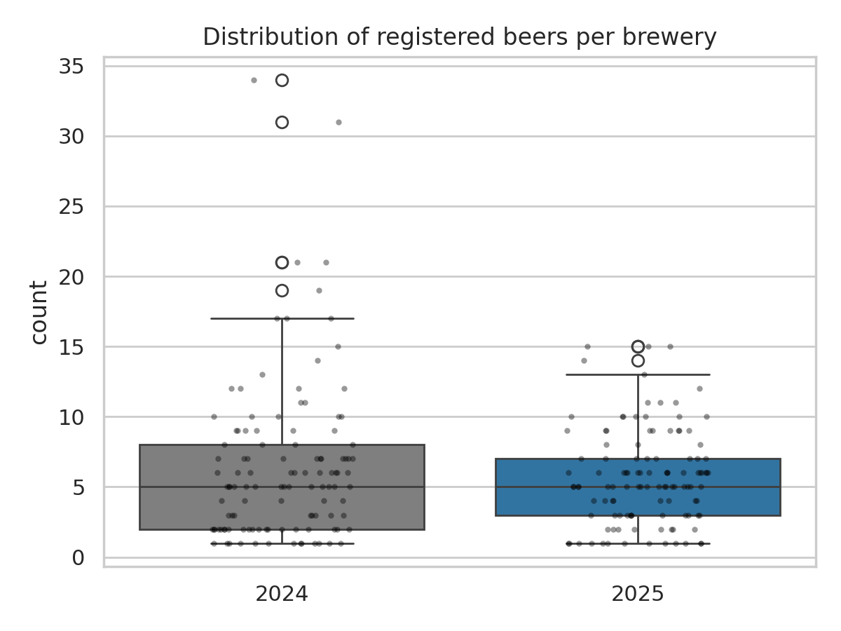This could be practical or due to changes in the registration mechanics. But the most interesting explanation is a strategy of entering fewer beers to reduce vote-splitting. Keeping support concentrated along “hero beer” lines limits dilution across a portfolio.